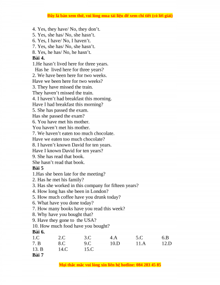 10. How much food have you bought? Bài 6. 1.C 2.C 3.C 4.A 5.C 6.B 7. B 8.C 9.C 10.D 11.A 12.D 13. B 14.C 15.C Bài 7