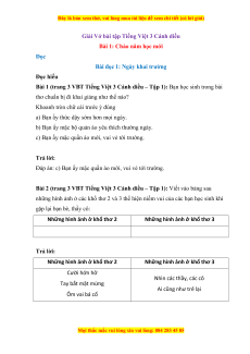 - Tailieugiaovien.com.vn giới thiệu giải vbt Tiếng Việt lớp 3 Cánh diều hay nhất, chi tiết đầy đủ Tập 1 sẽ giúp học sinh dễ dàng làm bài tập Tiếng Việt lớp 3, từ đó đạt điểm cao trong các bài thi môn Tiếng Việt 3.