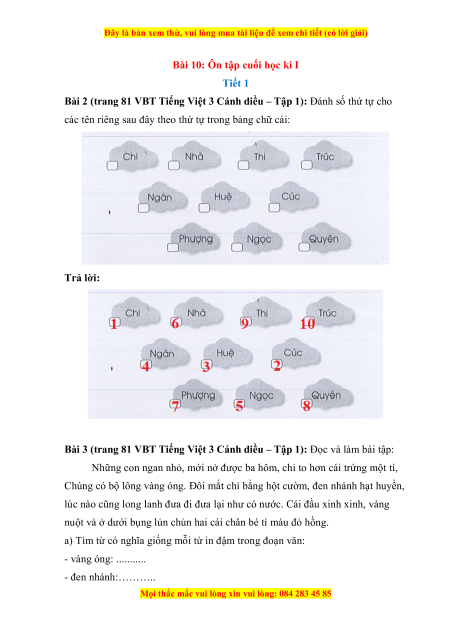 VBT Tiếng Việt 3 Bài 10 (Cánh diều): Ôn tập cuối học kì 1