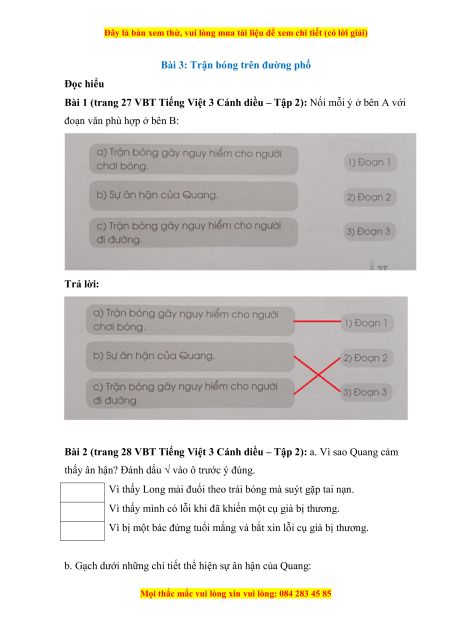 Bài 3: Trận bóng trên đường phố Đọc hiểu