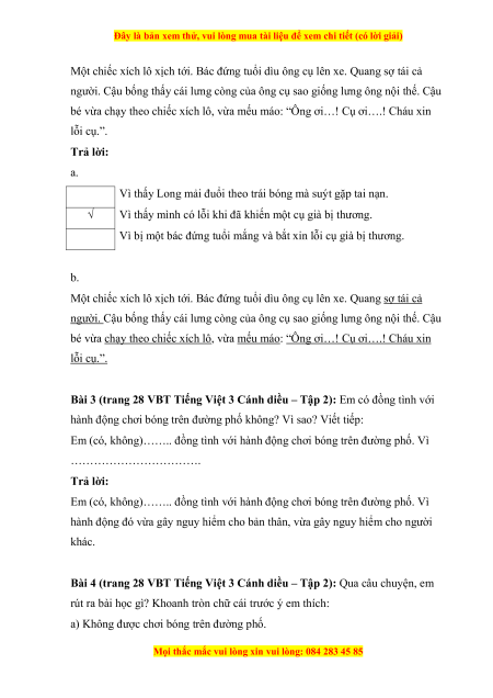 bé vừa chạy theo chiếc xích lô, vừa mếu máo: “Ông ơi…! Cụ ơi….! Cháu xin lỗi cụ.”. Trả lời: a.