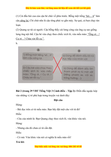 Bài 2 (trang 29 VBT Tiếng Việt 3 Cánh diều – Tập 2): Điền dấu ngoặc kép
