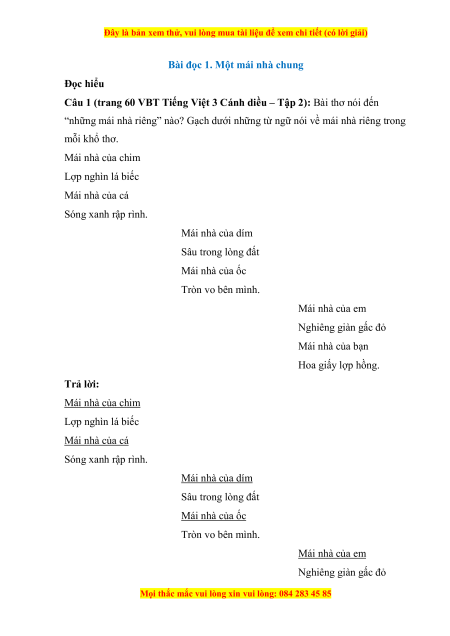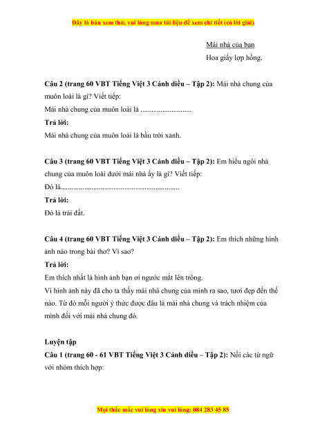 Đây là bản xem thử, vui lòng mua tài liệu để xem chi tiết (có lời giải) Mái nhà của bạn Hoa giấy lợp hồng.