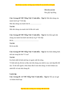 Câu 2 (trang 60 VBT Tiếng Việt 3 Cánh diều – Tập 2): Mái nhà chung của