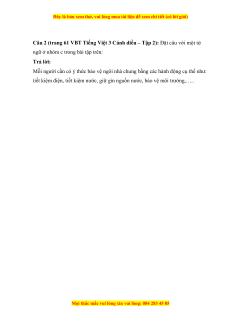 - Tailieugiaovien.com.vn giới thiệu giải vbt Tiếng Việt lớp 3 Cánh diều hay nhất, chi tiết đầy đủ Tập 2 sẽ giúp học sinh dễ dàng làm bài tập Tiếng Việt lớp 3, từ đó đạt điểm cao trong các bài thi môn Tiếng Việt 3.