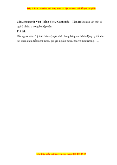 Đây là bản xem thử, vui lòng mua tài liệu để xem chi tiết (có lời giải) Trả lời: