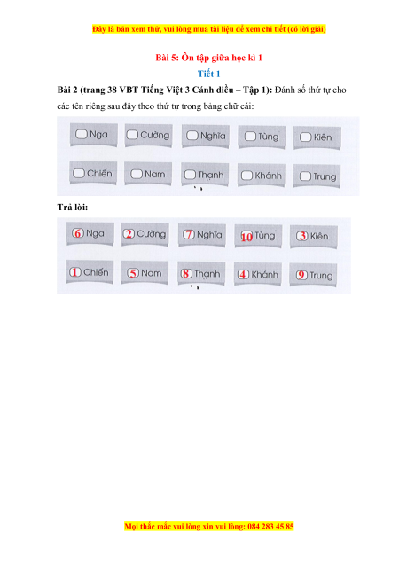 các tên riêng sau đây theo thứ tự trong bảng chữ cái: Trả lời: