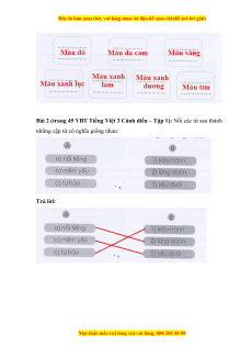 màu sắc trong bài đọc. Viết mỗi từ đó vào một ô: Trả lời: