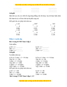 ệ đ xe ể m chi ti t (c ế ó lời gi i ả ) ……………. ……………. ……………. ……………. ……………. ……………. ……………. ……………. ……………. L i ờ giải Đ t ặ tính sao cho các ch ữ s ố cùng hàng th ng ẳ c t ộ v i ớ nhau. Sau đó th c ự hi n ệ nhân lần lư t ợ t các s ừ ố theo thứ t t ự ph ừ i ả sang trái K t ế qu c ả a ủ các phép tính như sau: 1 221 2 007 810 4 3 8 4 884 6 021 6 480 1 105 1 060 2 618 9 6 2 9 945 6 360 5 236 Phần 2. Luy n t ệ p ậ