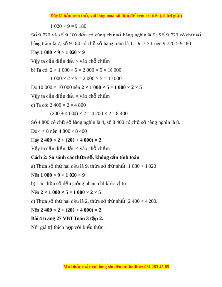 Nên 2 × 1 000 × 5 = 1 000 × 2 × 5 c) Th a s ừ ố th hai ứ đ u l ề à 2, th a ừ s t ố h nh ứ t ấ : 2 400 < 4 200.