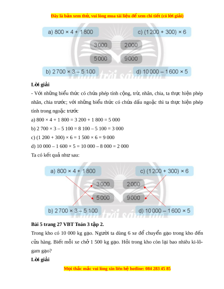 Bài 4 trang 27 VBT Toán 3 t p 2. ậ N i ố giá tr t ị hích h p v ợ i ớ bi u t ể h c. ứ M i