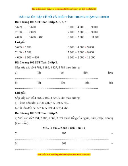 BÀI 102. ÔN T P V S VÀ PHÉP TÍNH TRONG PH M VI 100 000Ậ Ề Ố Ạ