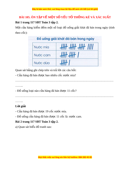 VBT Toán lớp 3 Bài 105 (Cánh diều): Ôn tập về một số yếu tố thống kê và xác suất