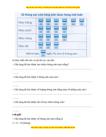 ……………………………………………………………………………………… …….. L i ờ giải - C a ử hàng đã bán đư c ợ s t ố hùng s n ơ màu tr ng ắ là 3 × 6 = 18 (thùng)