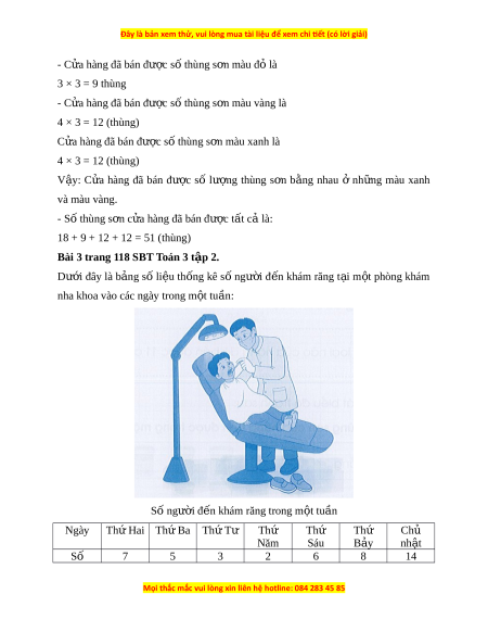 Bài 3 trang 118 SBT Toán 3 t p 2. ậ Dư i ớ đây là b ng ả số li u ệ th ng ố kê s ố ngư i ờ đ n ế khám răng t i ạ m t ộ phòng khám