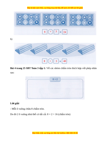 Bài 4 trang 25 SBT Toán 3 t p 1: ậ V các nhóm ch m tròn thích h p v i phép nhân ẽ ấ ợ ớ