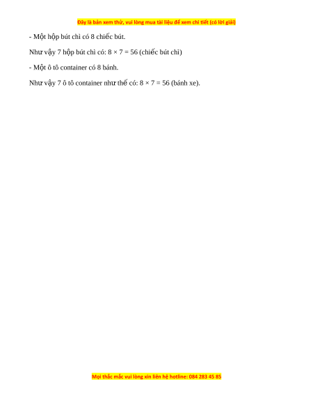 Nh vư y 7 ô tô container nh th có: 8 ậ ư ế × 7 = 56 (bánh xe).