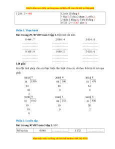ệ đ xe ể m chi ti t (c ế ó lời gi i ả ) 1 218 : 3 = 406 12 tr 12 b ừ ng ằ 0 + Hạ 5; 5 chia 2 đư c ợ 2, vi t ế 2, 2 nhân 2 b ng ằ 4; 5 tr 4 b ừ ng ằ 1 8 725 : 2 = 4 367 (d ư 1) Phần 1. Th c hành ự