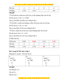 ệ đ xe ể m chi ti t (c ế ó lời gi i ả ) Số chia 4 4 8 8 Thư ng ơ 2 210 2 210 ……………… 419 L i ờ giải * Ở c t ộ th hai ứ , mu n t ố ìm số b chi ị a, ta l y t ấ hư ng ơ nhân v i ớ s chi ố a