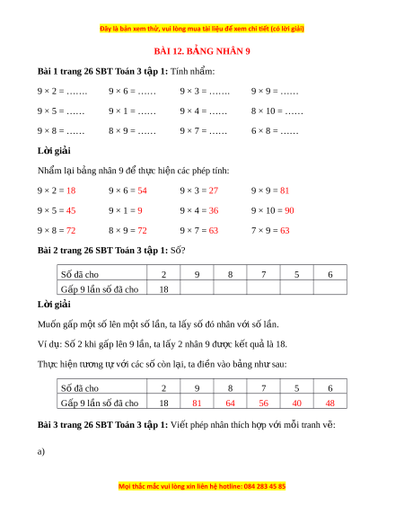 VBT Toán lớp 3 Bài 12 (Cánh diều): Bảng nhân 9