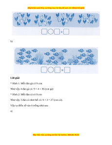 * Hình 2: Mỗi đàn cá có 9 con Như v y 3 đàn cá ậ nh t ư h có: ế 9 × 3 = 27 (con cá). V y ậ ta đi n s ề ố vào ô trống nh s ư au: a)