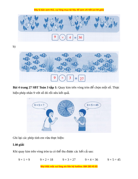 Quay kim trên vòng tròn đ ch ể n ọ m t ộ s . ố Th c ự hiện phép nhân 9 v i ớ số đó rồi nêu k t ế qu . ả Ghi l i ạ các phép tính em v a ừ th c ự hi n ệ : L i ờ giải