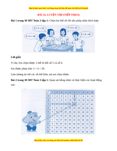 ẻ ố rồi nêu phép nhân thích h p: ợ L i ờ giải: Ví d : ụ Em ch n đ ọ ư c ợ 2 th l ẻ à th s ẻ ố 5 và số 6. Em đư c phép t ợ ính: 5 × 6 = 30. Làm tư ng t ơ v ự i ớ các s t ố h khác m ẻ à em ch n ọ đư c. ợ