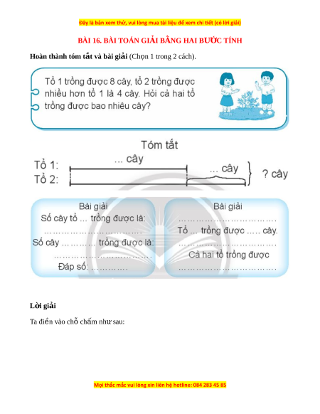 BÀI 16. BÀI TOÁN GI I Ả B N Ằ G HAI BƯ C Ớ TÍNH Hoàn thành tóm t t ắ và bài gi i ả (Ch n 1 t ọ rong 2 cách). L i ờ giải Ta đi n vào ch ề ỗ chấm nh s ư au: