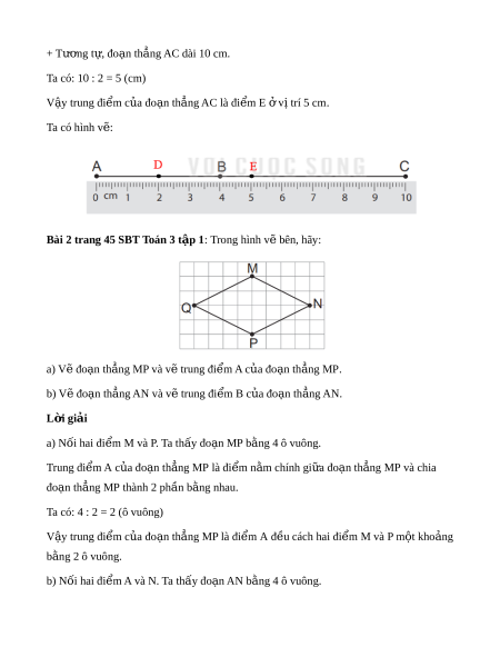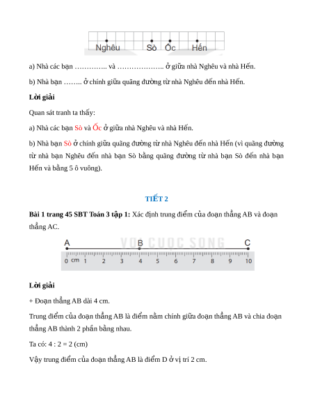 Bài 1 trang 45 SBT Toán 3 t p 1ậ : Xác đ nh trung đi m c a đo n th ng AB và đo n ị ể ủ ạ ẳ ạ