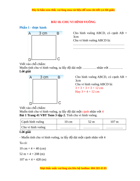 BÀI 18. CHU VI HÌNH VUÔNG Phần 1 - th c ự hành