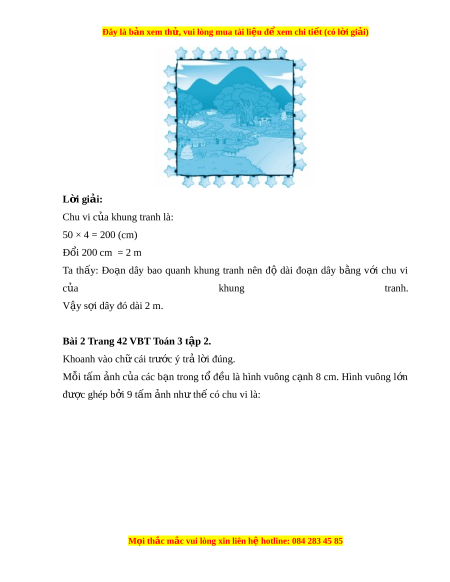 ệ đ xe ể m chi ti t (c ế ó lời gi i ả ) L i ờ giải: Chu vi c a ủ khung tranh là: 50 × 4 = 200 (cm) Đ i ổ 200 cm = 2 m Ta th y: ấ Đo n