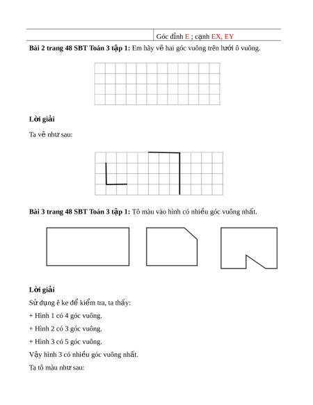 Bài 1 trang 48 SBT Toán 3 t p 1ậ : Dùng ê ke đ ki m tra góc vuông r i vi t ti p vào ể ể ồ ế ế