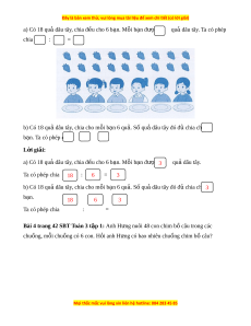 b) Có 18 quả dâu tây, chia cho mỗi b n 6 qu ạ . ả S qu ố ả dâu tây đó đ chi ủ a cho 3 b n. ạ 18 6 3 Ta có phép chia : =