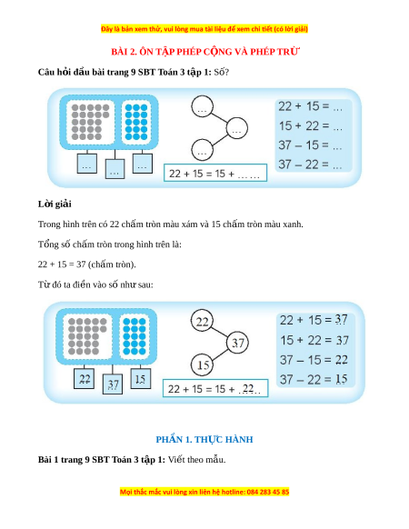 ấ tròn trong hình trên là: 22 + 15 = 37 (ch m ấ tròn). T đó t ừ a đi n vào s ề ố như sau: PHẦN 1. TH C Ự HÀNH