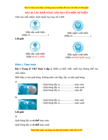 Bài 1 Trang 47 VBT Toán 3 t p ậ 2. Đi n ề có th , ể ch c ắ ch n