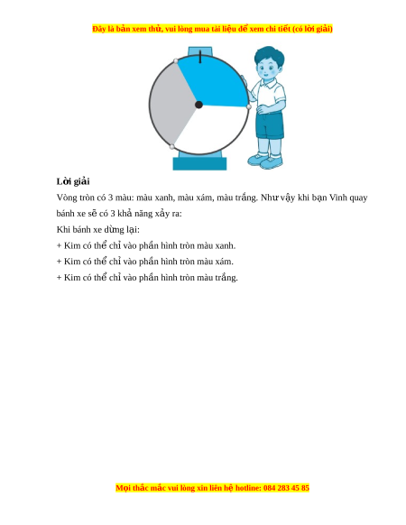 Vòng tròn có 3 màu: màu xanh, màu xám, màu tr ng. ắ Nh ư v y ậ khi b n ạ Vinh quay bánh xe sẽ có 3 kh năng x ả y ả ra: Khi bánh xe d ng l ừ i ạ : + Kim có th ch ể vào ph ỉ n hì ầ nh tròn màu xanh. + Kim có th ch ể vào ph ỉ n hì ầ nh tròn màu xám. + Kim có th ch ể vào ph ỉ n hì ầ nh tròn màu tr ng. ắ M i