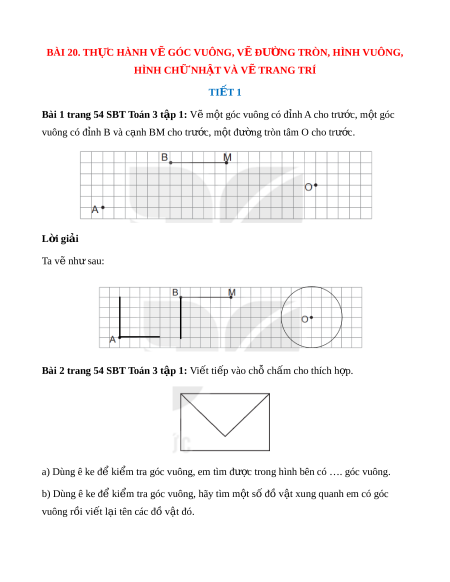 VBT Toán lớp 3 Bài 20 (Kết nối tri thức): Thực hành vẽ góc vuông, vẽ đường tròn, hình vuông, hình chữ nhật và vẽ trang trí