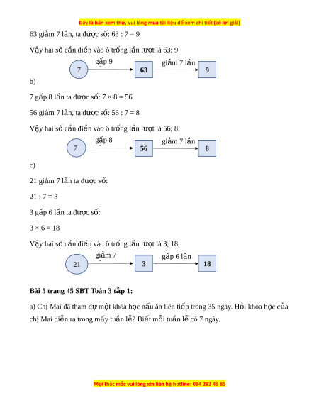 Bài 5 trang 45 SBT Toán 3 t p 1 ậ : a) Chị Mai đã tham d m ự t ộ khóa h c ọ n u ăn l ấ iên ti p t ế rong 35 ngày. H i ỏ khóa h c c ọ a ủ chị Mai di n r ễ a trong m y t ấ u n l ầ ? ễ Bi t ế mỗi tuần l có ễ 7 ngày.