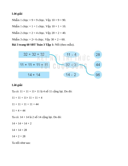 Bài 3 trang 60 SBT Toán 3 T p 1 ậ : Nối (theo mẫu). L i ờ giải