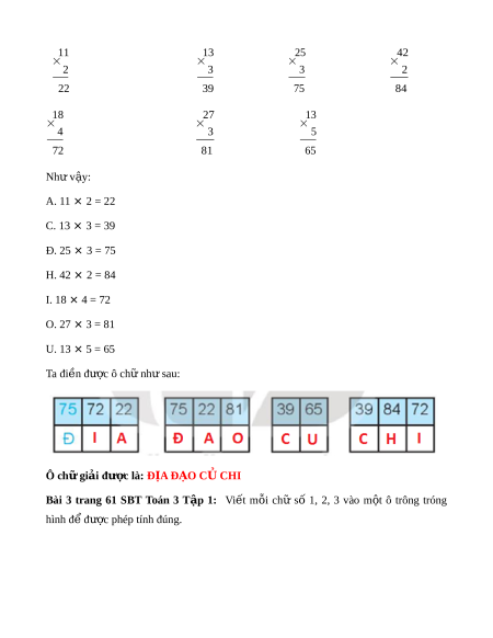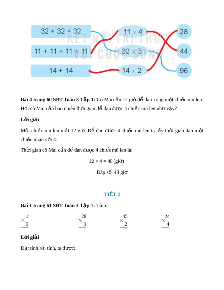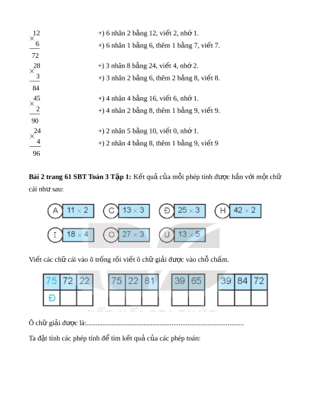Bài 1 trang 61 SBT Toán 3 T p 1 ậ : Tính. 12 28 45 24 6 3 2 4 L i ờ giải Đ t