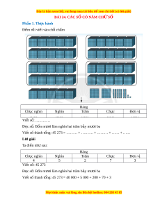 ệ đ xe ể m chi ti t (c ế ó lời gi i ả ) BÀI 24. CÁC S C Ố Ó NĂM CH S Ữ Ố Phần 1. Th c hành ự Đ m ế rồi vi t ế vào chỗ chấm Hàng Ch c ụ nghìn Nghìn Trăm Ch c ụ Đ n v ơ ị …… …… …… …… …… Vi t ế số: ………… Đ c s ọ ố: Bốn mư i ơ lăm nghìn hai trăm b y ả mư i ơ ba Vi t