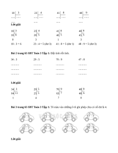 Bài 1 trang 65 SBT Toán 3 T p 1 ậ : Tính. 18 3 23 4 41 8 48 9 ...... ...... ...... ...... ...... ...... ...... ....... ...... ...... ...... ...... L i ờ giải 18 3 23 4 41 8 48 9 18 6 20 5 40 5 45 5 0 3 1 3 18 : 3 = 6 23 : 4 = 5 (d 3) ư 41 : 8 = 5 (d 1 ư ) 48 : 9 = 5 (d 3 ư )