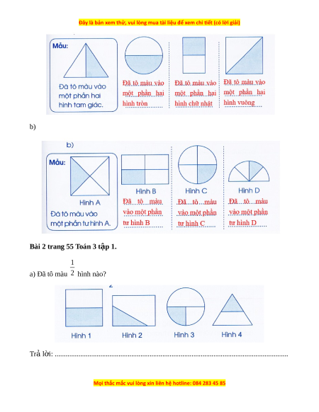 Bài 2 trang 55 Toán 3 t p 1. ậ 1 a) Đã tô màu 2 hình nào? Tr l ả i