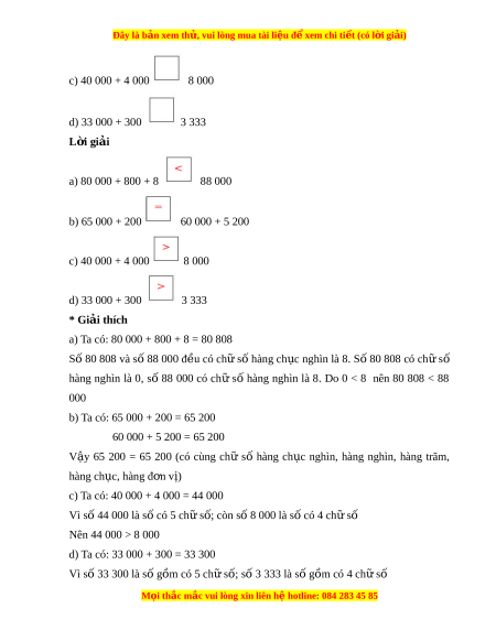 ệ đ xe ể m chi ti t (c ế ó lời gi i ả ) c) 40 000 + 4 000 8 000 d) 33 000 + 300 3 333 L i ờ giải a) 80 000 + 800 + 8 88 000 b) 65 000 + 200 60 000 + 5 200 c) 40 000 + 4 000 8 000 d) 33 000 + 300 3 333 * Giải thích