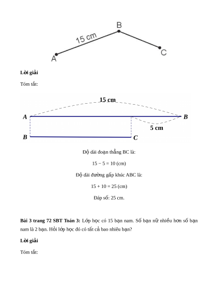 Bài 2 trang 71 SBT Toán 3: Đ ng g p khúc ABC có đo n th ng AB dài 15 cm,ườ ấ ạ ẳ