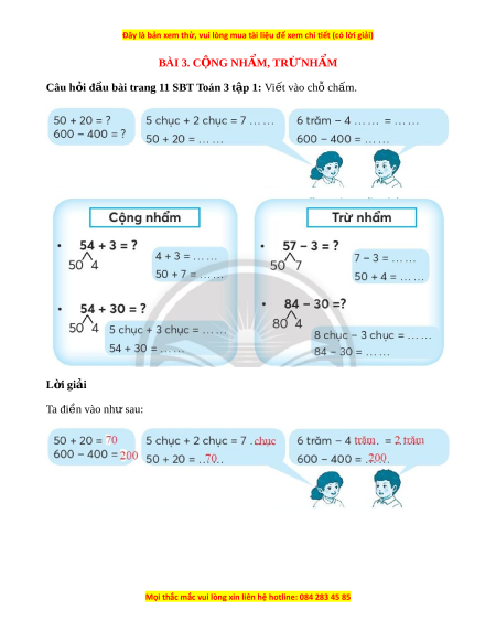 trang 11 SBT Toán 3 t p 1 ậ : Vi t ế vào chỗ ch m ấ . L i ờ giải Ta đi n vào nh ề ư sau: