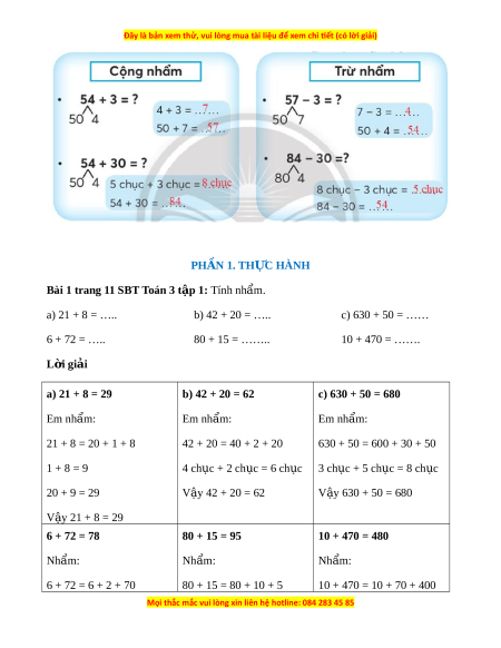 Bài 1 trang 11 SBT Toán 3 t p 1ậ : Tính nh mẩ .