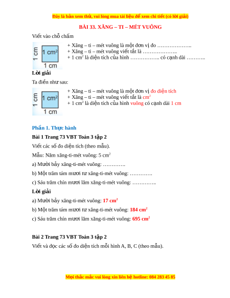 ơ lăm xăng-ti-mét vuông: ………….. L i ờ giải a) Mư i ờ b y