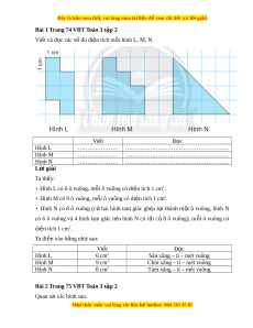 Bài 1 Trang 74 VBT Toán 3 t p 2 ậ Vi t ế và đ c các ọ số đo di n t ệ ích m i ỗ hình L, M, N. Vi t ế Đ c ọ Hình L …………………