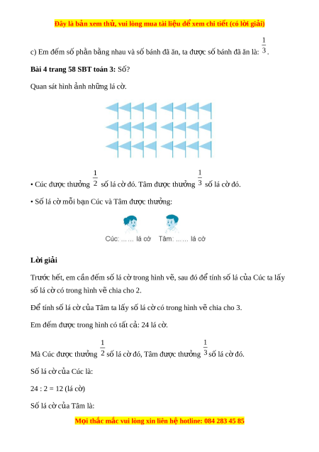 ệ đ ể xem chi ti t ế (có l i ờ gi i) ả 24 : 3 = 8 (la c ) ờ . K t ê lu n: ậ Cúc 12 la cờ Tâm 8 la c . ờ